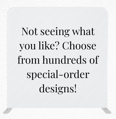 All of our Flower Walls, Backdrops and Neon Signs are available to rent on their own or as an add-on if not already included in your package. Flower walls are 8' x 8', fabric backdrops are 7.5' x 7.5'- 8' (depending on design), and include free delivery within 30 miles, setup/breakdown, weighted heavy duty stands, and up to 6 service hours. Additional hours available upon request.