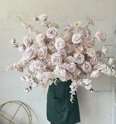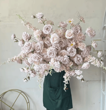 Elegant white roses paired with blush, champagne, and soft pink roses, accented with delicate pastel blooms for a picturesque romantic ambiance.