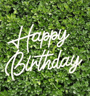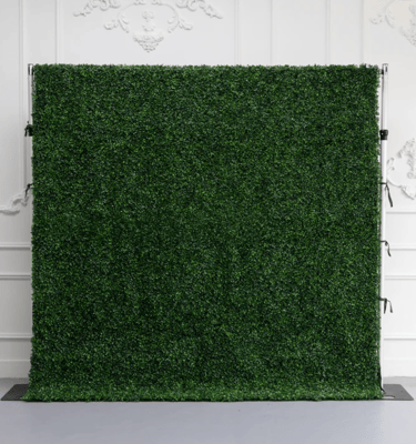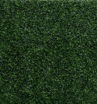 A dense backdrop of deep green boxwood foliage, offering a classic, natural look perfect for custom signage or floral accents.