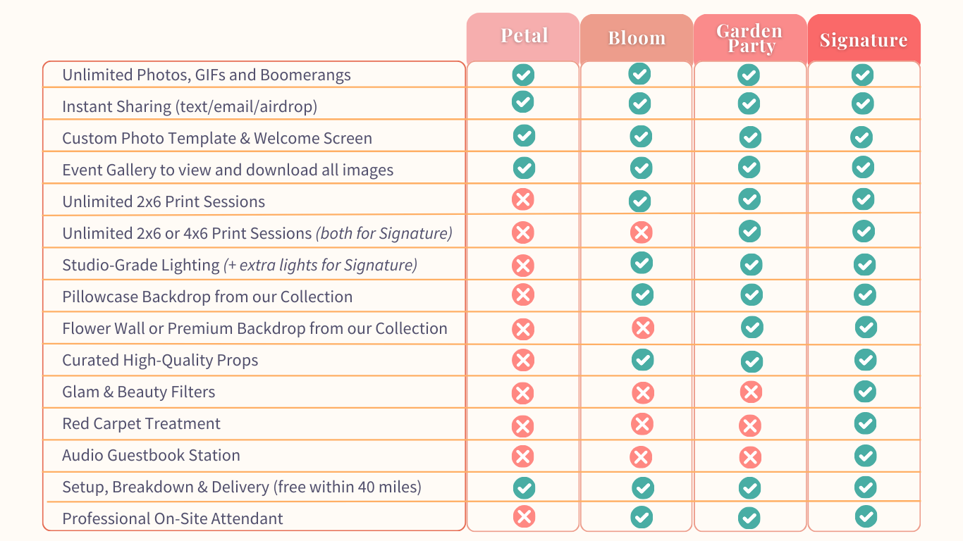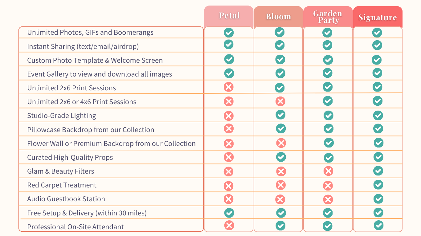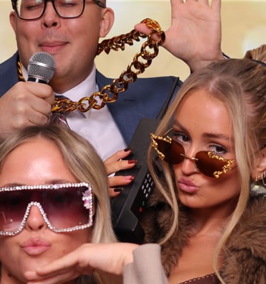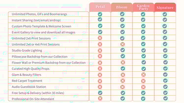 Designed for weddings, milestone celebrations and corporate functions, this package includes a premium backdrop or flower wall, curated props, and upgraded prints with custom overlays to ensure a gorgeous, interactive event.